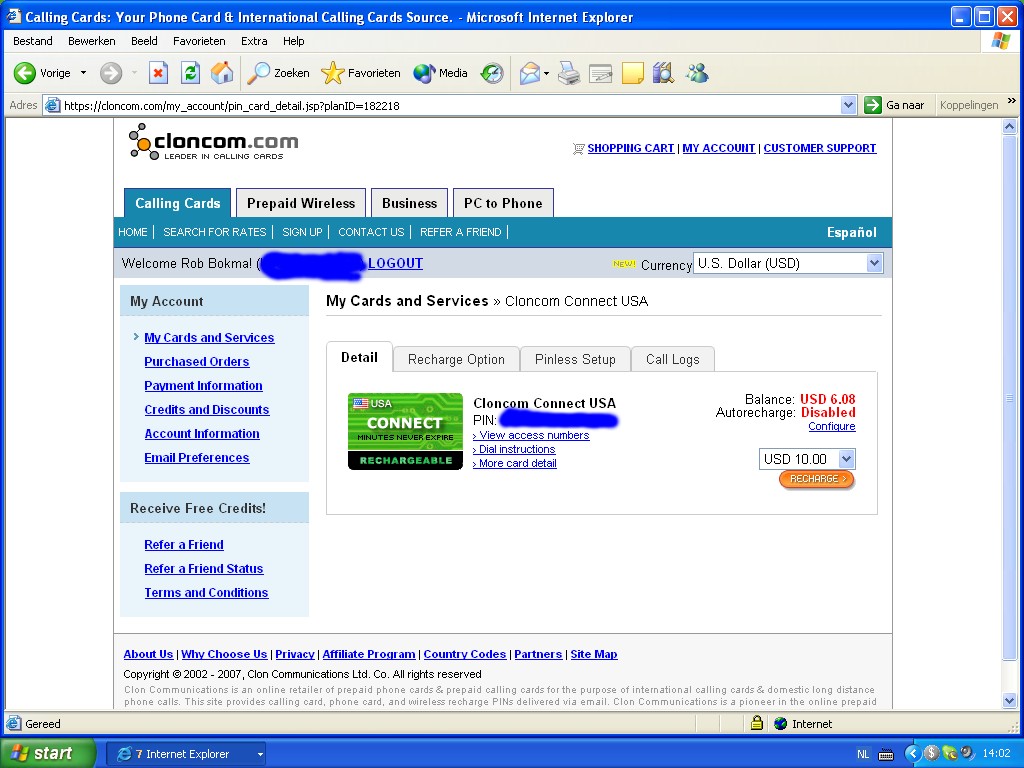 per minuut een uur of vijftien bellen met Nederland voor 20 dollar.